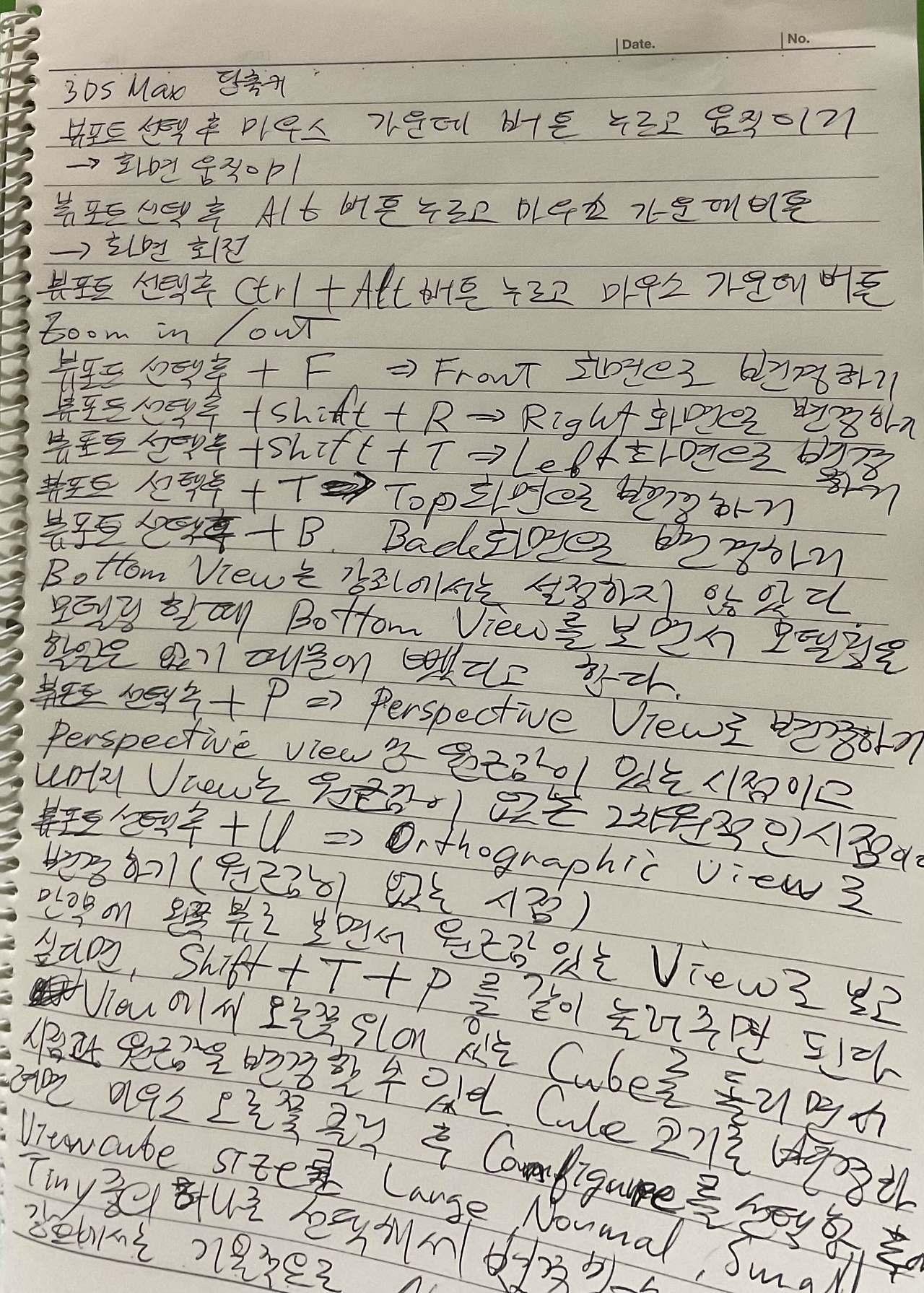 뷰포트 선택후 P키 누르기 => Perspective View 화면으로 변경하기