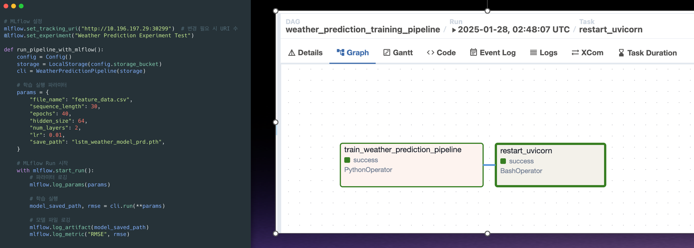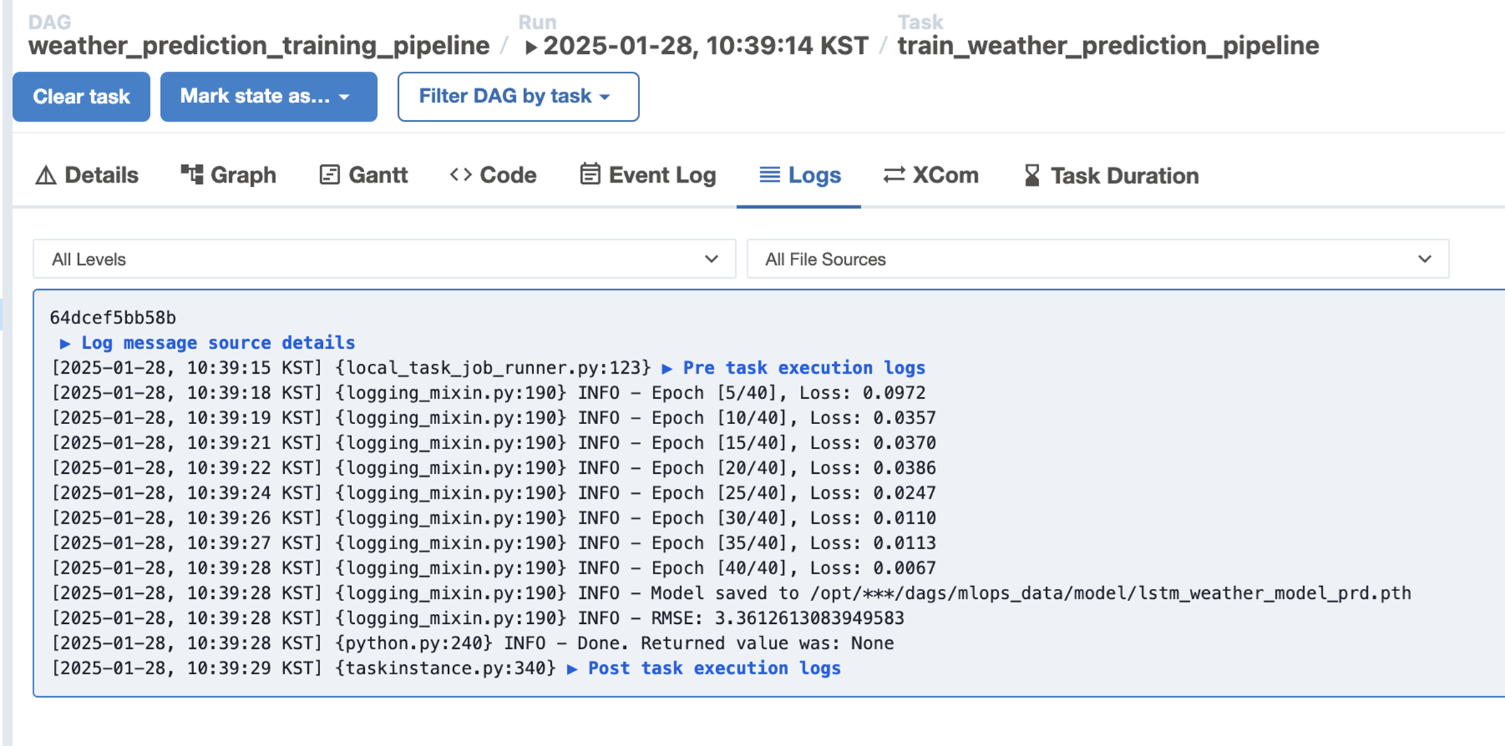이를 통해 데이터 준비, 모델 학습, 평가 과정을 수동으로 관리하며, 전체 MLOps 파이프라인의 기초를 다질 수 있습니다.