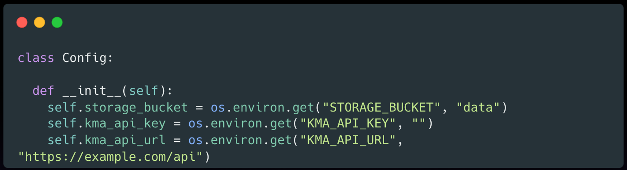 환경 변수에 대한 중복 코드를 줄이기 위해 Config 클래스를 만들었습니다.
